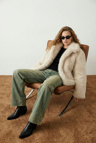 Bej Astarlı Kemerli Cepli Uzun Kaban